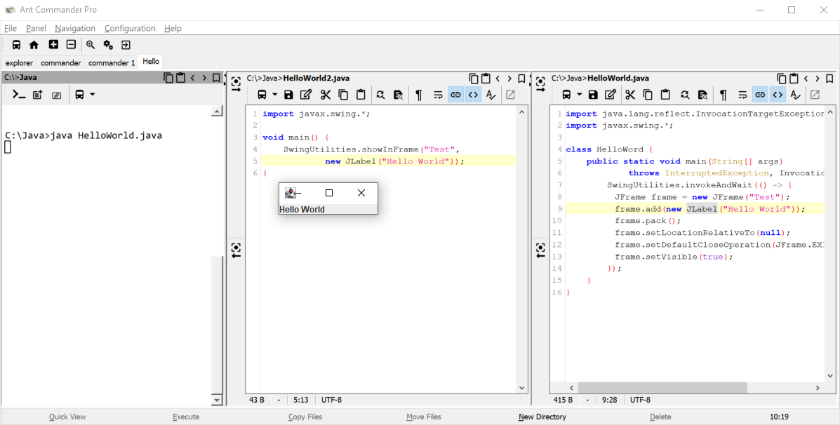 SwingUtilities.showInFrame("Test", () -> new JLabel("Hello World"));