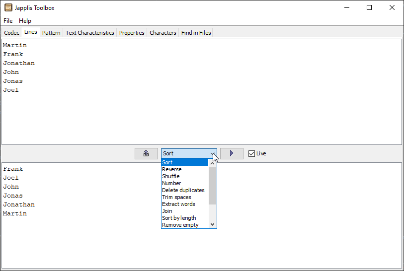 - Replace regexp (e.g. (.*)x(.*)->$2x$1)